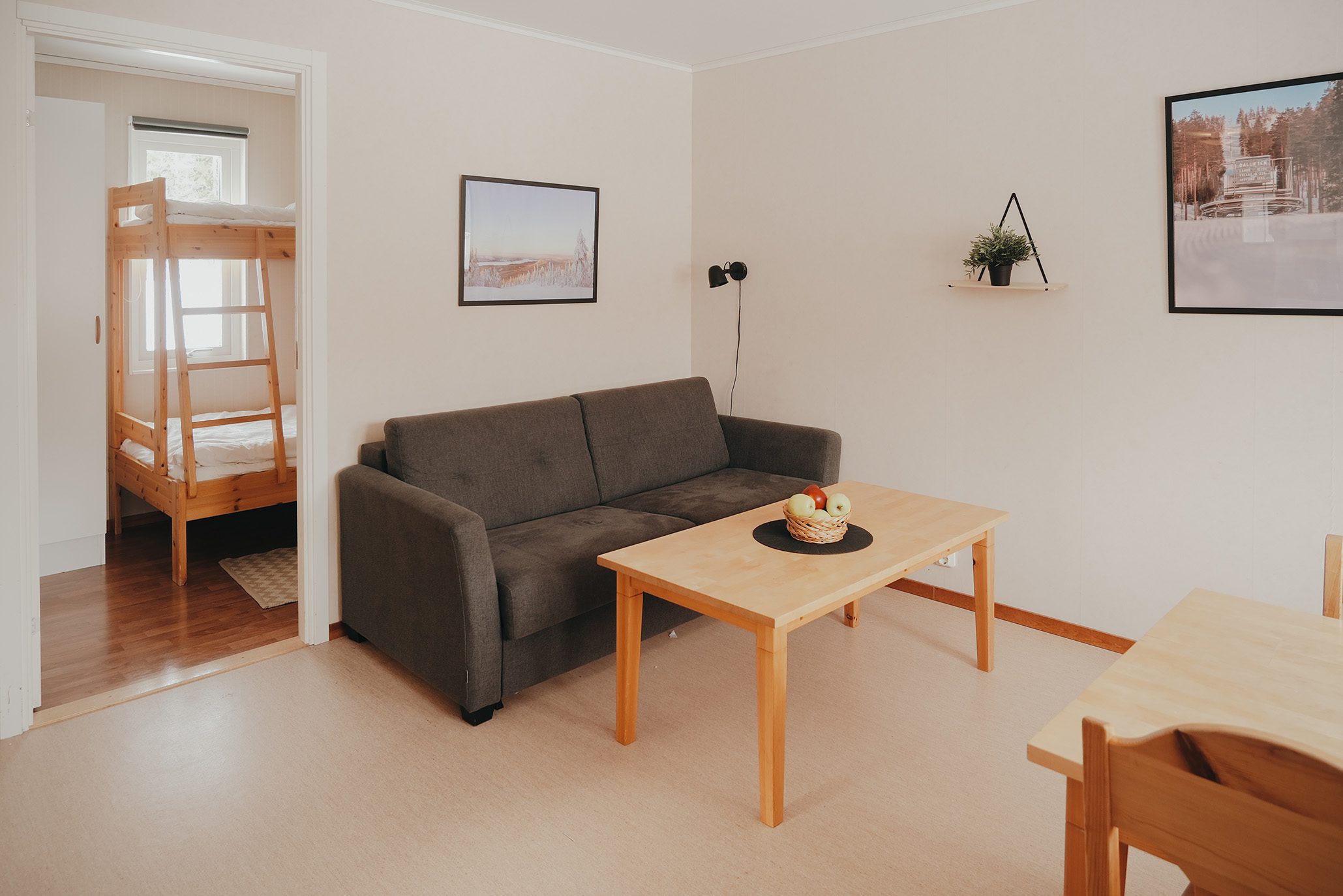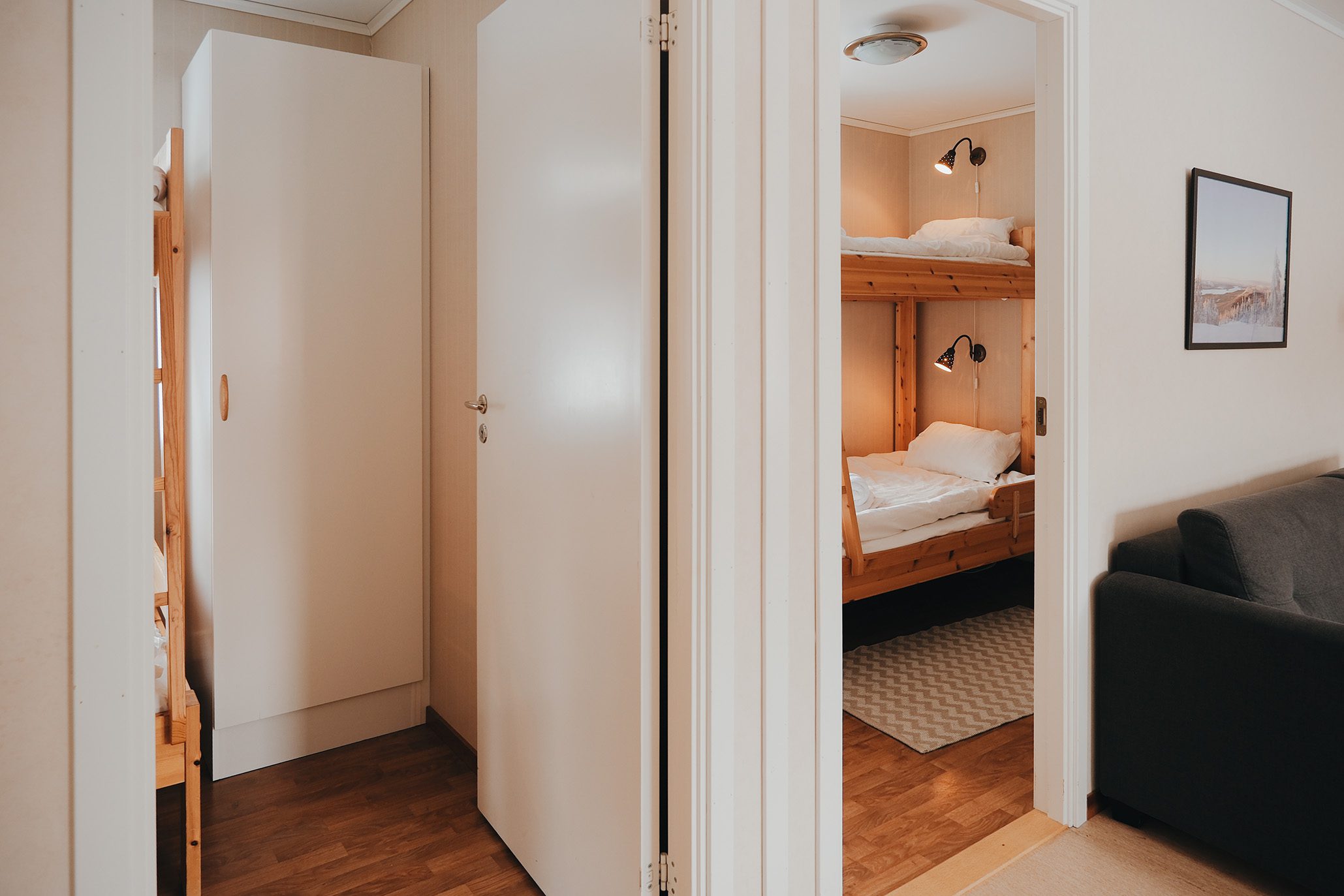 I Skogsbyn bor du i våra nybyggda stugor från hösten 2021. Dessa tre sexbäddarsstugor ligger precis ovanför Nalobyn. Stugorna har två sovrum, ett med en dubbelsäng och ett med två våningssängar. Totalt 6+2 bäddar. I alla stugor finns köksutrustning för självhushållning.